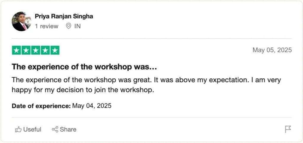 You will receive emails and whatsapp messages from our team to remind you about the workshop.